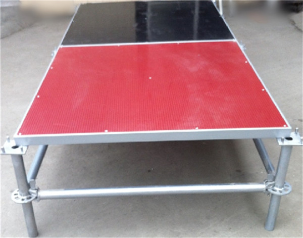 規格:1.22m*1.22m;材質:框架為50*25*1.5矩管,主管為48*2管,橫拉為48*2管,黑色面板為15mm厚度出口專用建筑膠合板,兩面防水覆膜;材質:框架為50*30*1.5P型管, 主管為48*2管,橫拉為48*2管,紅色面板為18mm厚度出口專用建筑膠合板,防水防滑覆膜。